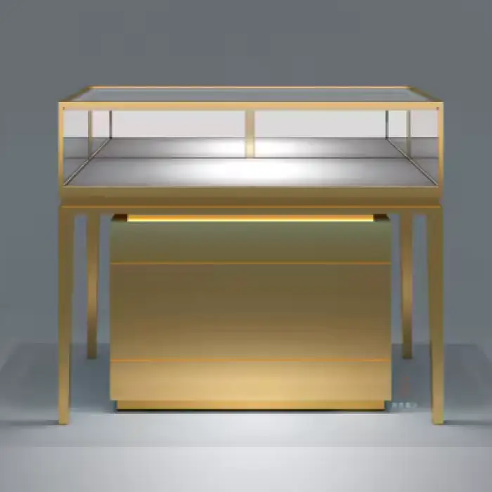 The dimensions of the Mirror Jewelry Store Cabinet can be customized based on your needs. Please contact our sales team for more specific sizing options.