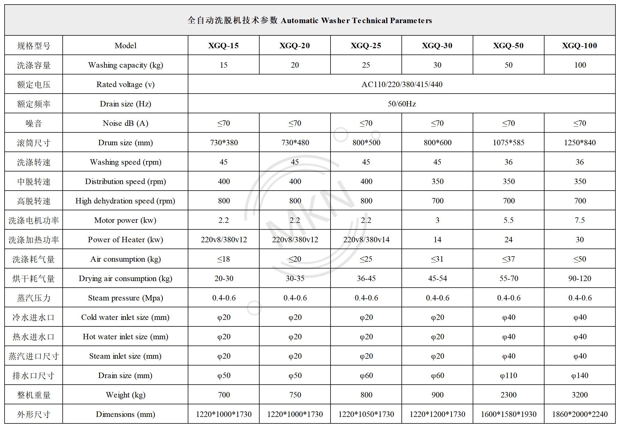 The MKN Industrial Washing Machine - Model XGQ-20 is designed for high-capacity washing, suitable for industrial applications. Please check the product specifications for exact capacity details.