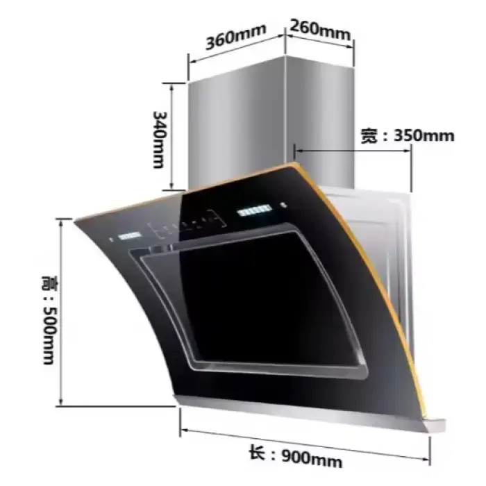 The dimensions of the chimney are 900mm x 350mm x 500mm.
