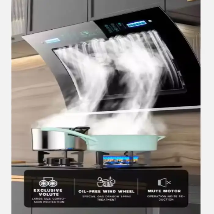 The kitchen chimney is controlled using a user-friendly touch switch.