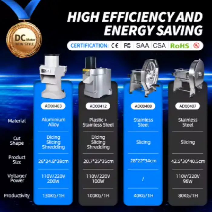 The cutter is suitable for fruit processing plants, vegetable processing plants, commercial catering services, and restaurants.
