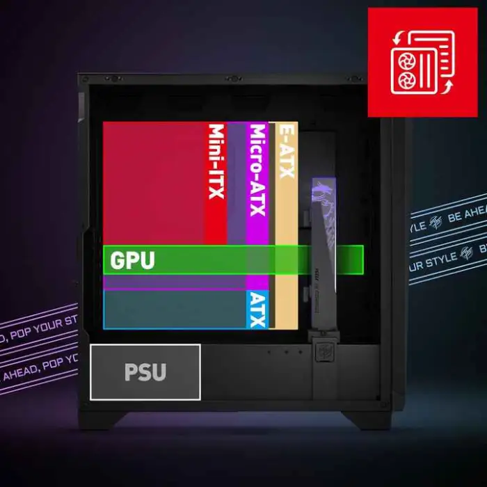 The MSI MPG GUNGNIR 300R Airflow is a mid-tower case, designed to accommodate ATX form factor motherboards.