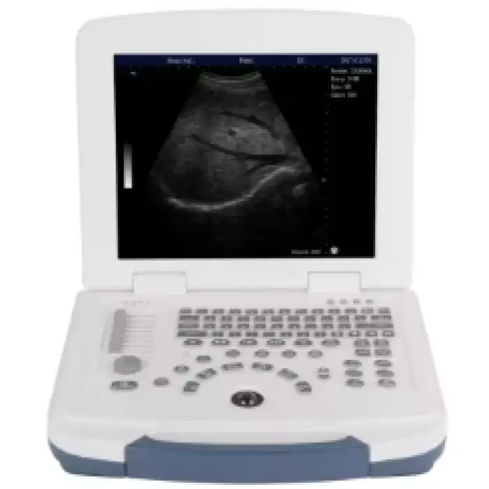 The ultrasound scanner features a 12-inch LCD display with a resolution of 800x600 pixels.
