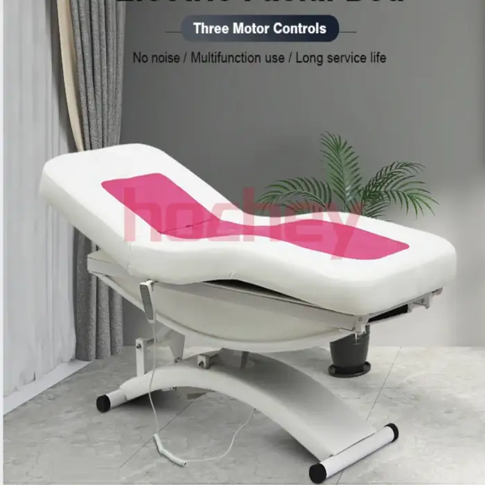 The MT Modern Luxury Beauty Salon Furniture features electric height adjustment, allowing for easy and precise positioning.