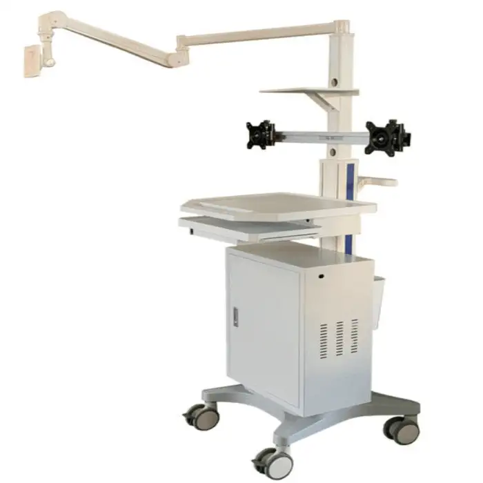 This is the GF10-3 Multi-Functional Diagnostic Ultrasound/Computer/Patient Monitor Trolley designed for hospital and clinic use to carry ultrasound machines, patient monitors and related medical equipment.