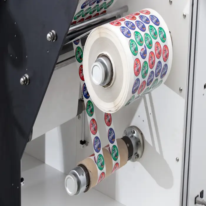 The machine can slit labels with a width ranging from 10 mm to 320 mm.