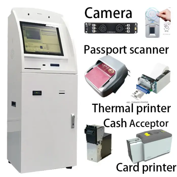 The built-in passport scanner allows users to quickly scan their passports for identity verification during check-in or registration.