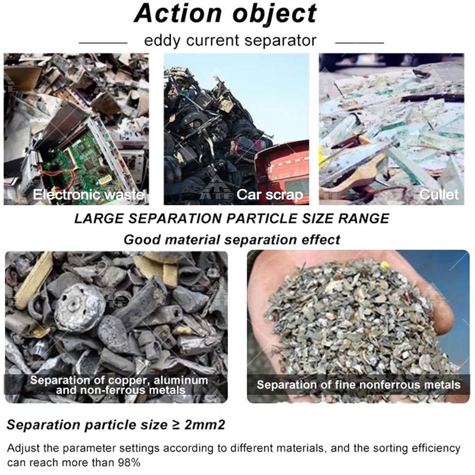 Non Ferrous Metal Scrap Aluminum Can Separator Plastics Aluminum Copper Eddy Current Separator