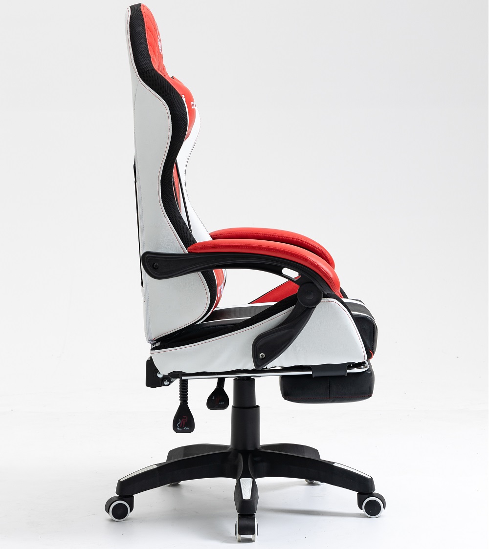Commonly the chair is upholstered in PU leather or breathable fabric with high-density foam padding for comfort and support. Exact materials vary by model, so consult the product description for specifics.