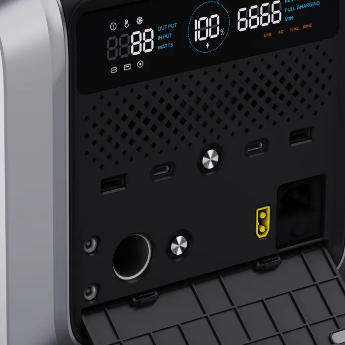 The OM-600 features multiple output options, including wireless charging, Type C, RV port, and a cigar lighter, allowing you to charge various devices simultaneously.