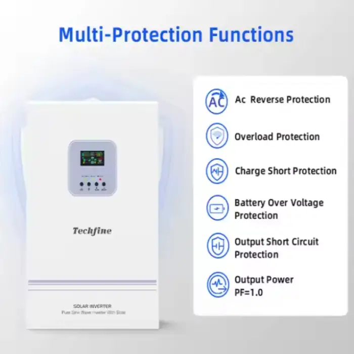 The inverter boasts a high efficiency rating of 98%, which minimizes energy loss during conversion.