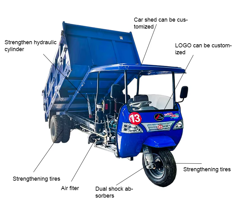 The Open-Body 3-Wheel Cargo Motorcycle can carry a maximum load of up to 3000 kg.