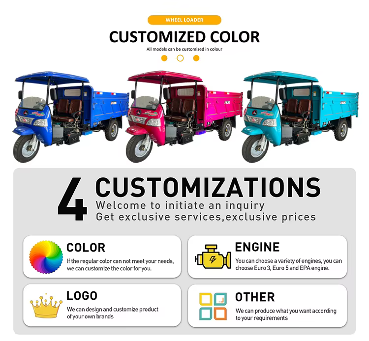 Yes, the Open-Body 3-Wheel Cargo Motorcycle offers customizable color and logo options.