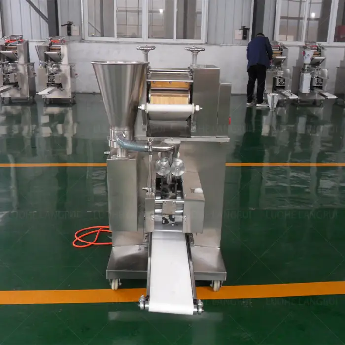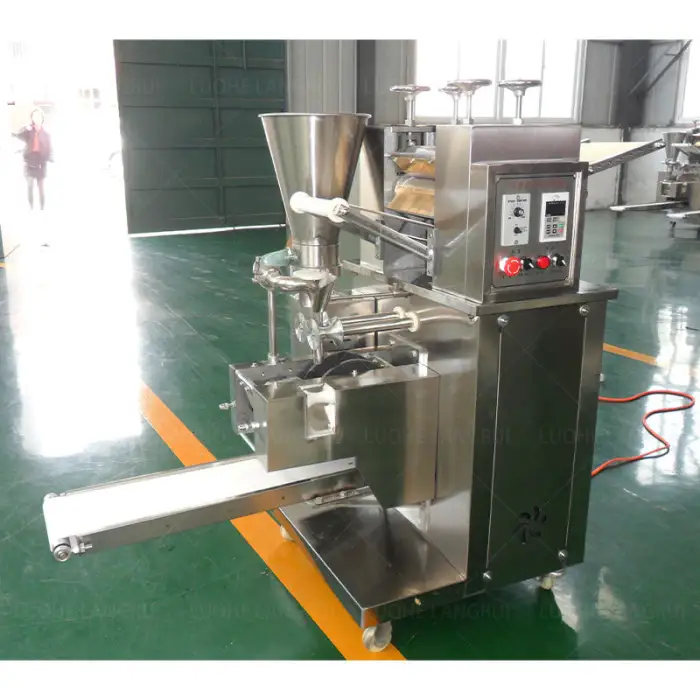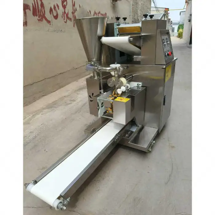 This machine is specifically designed for high efficiency with a production capacity of up to 7000 dumplings per hour, made from durable materials, and equipped with user-friendly controls.