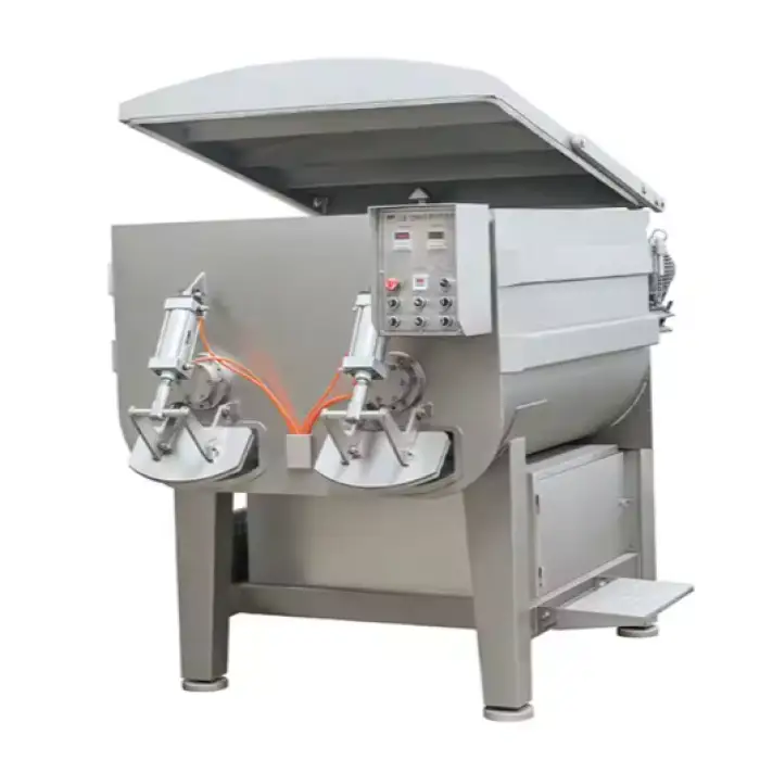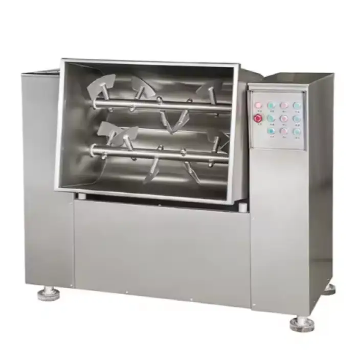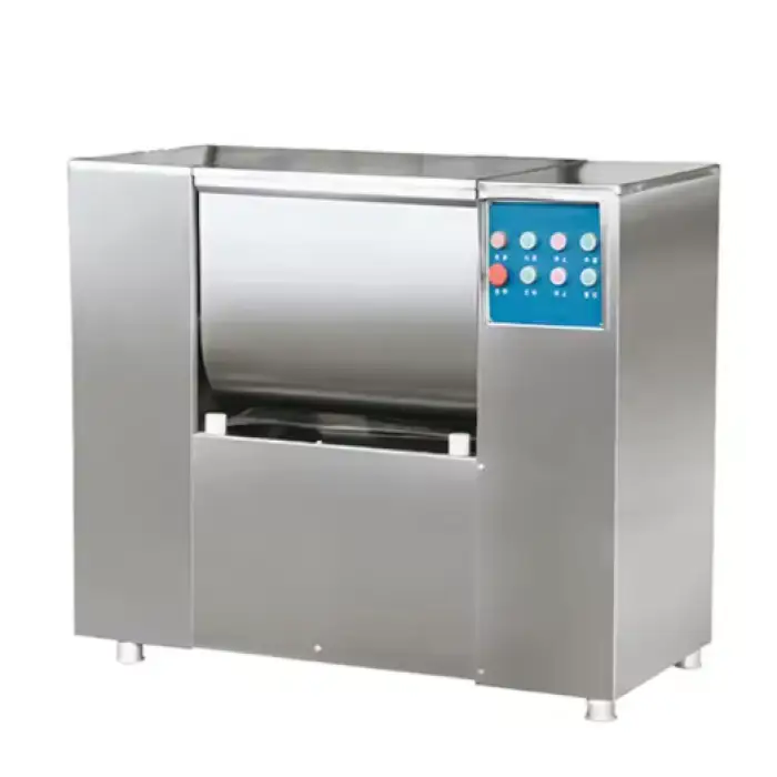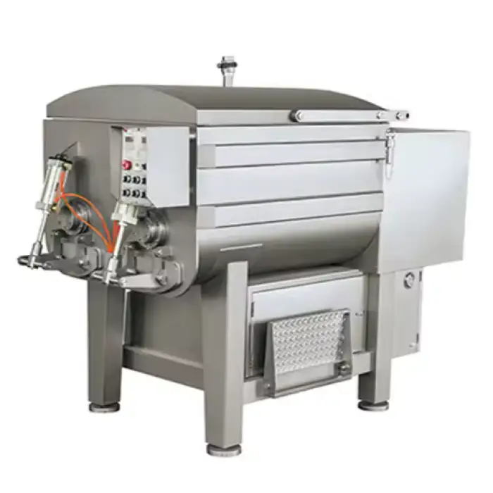 The mixer is perfect for meat packing companies, food manufacturers, and catering services needing bulk meat preparation.