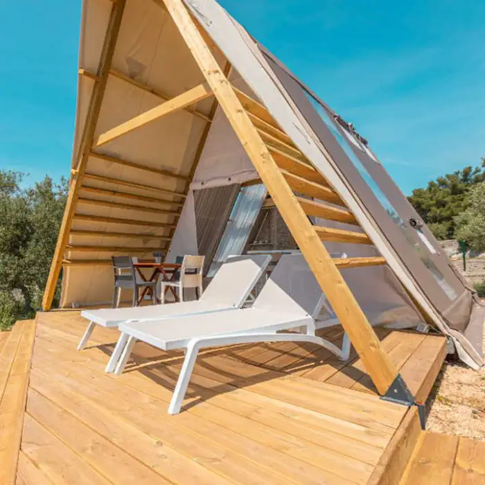While it is designed for glamping and camping, it can also be used for semi-permanent setups depending on local regulations.