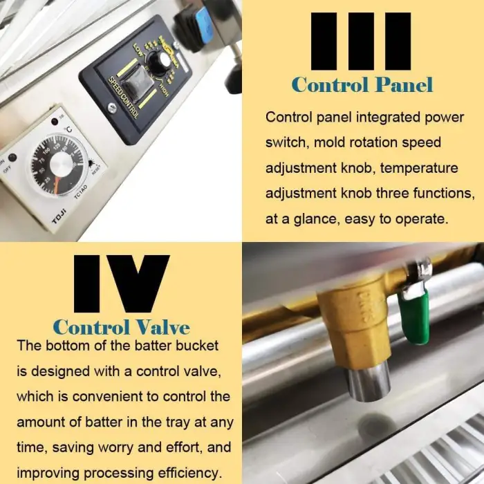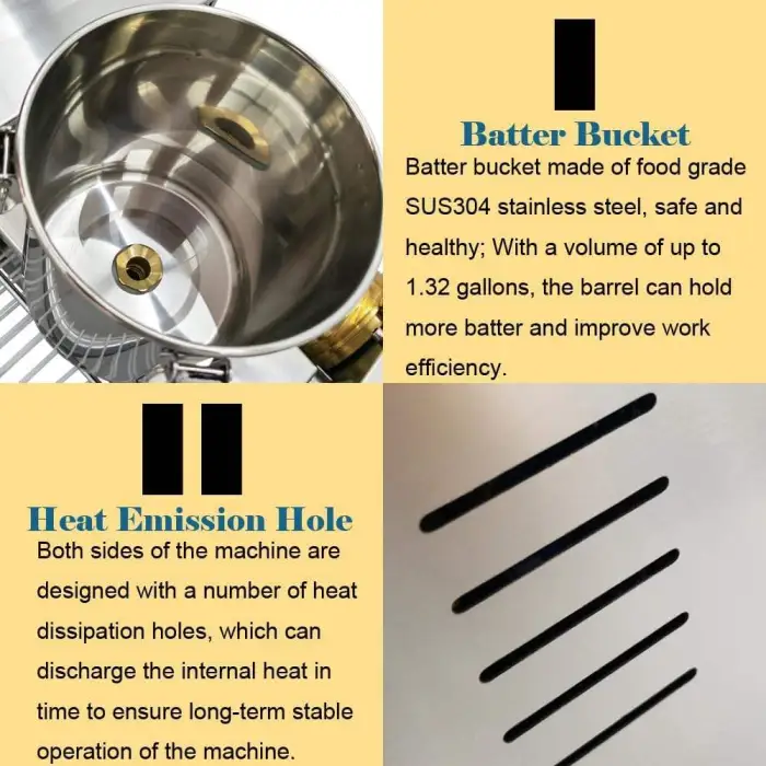 The machine features an adjustable temperature control that allows you to set the desired cooking temperature.