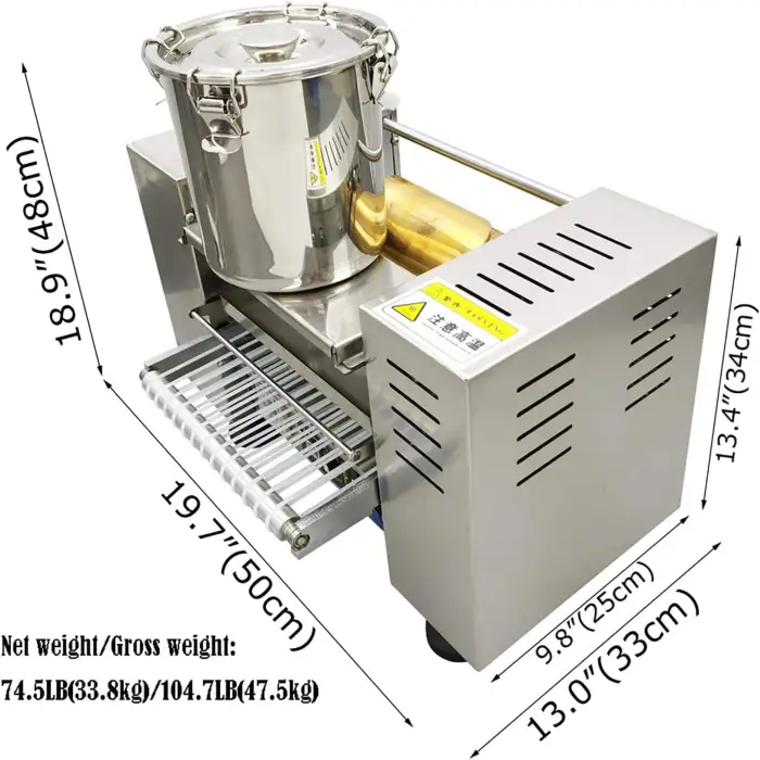 The machine is made of high-quality stainless steel, ensuring durability and longevity.