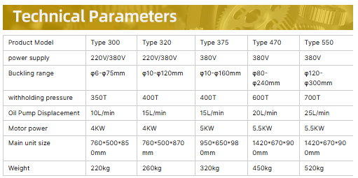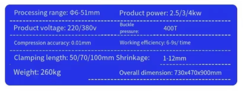 The machine can shrink pipes with a maximum diameter of 120 mm and a thickness of up to 5 mm.