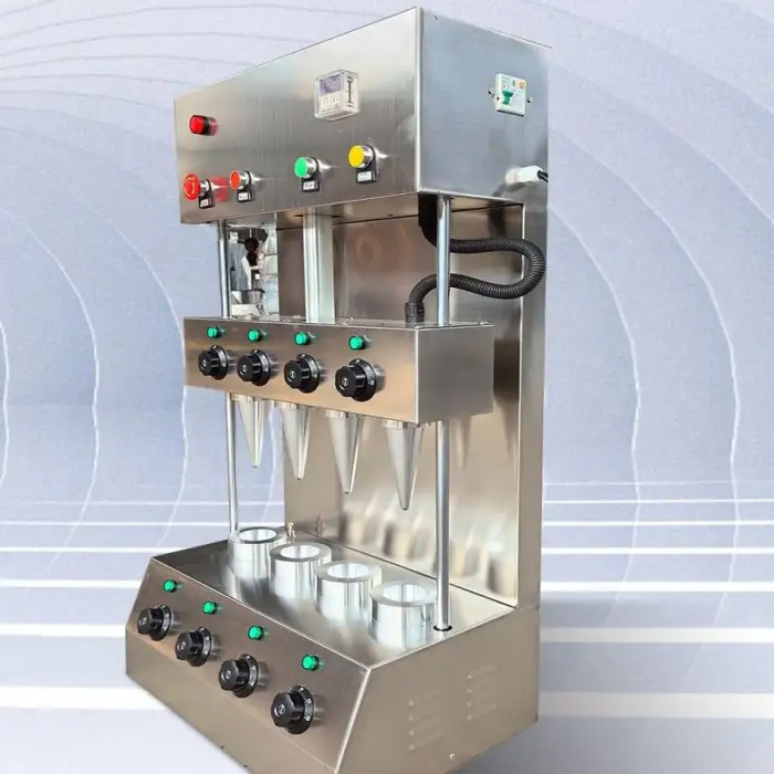 A Pizza Cone Maker is a machine designed to create pizza cones, which are pizza ingredients served in a cone-shaped crust, providing a unique and portable dining experience.