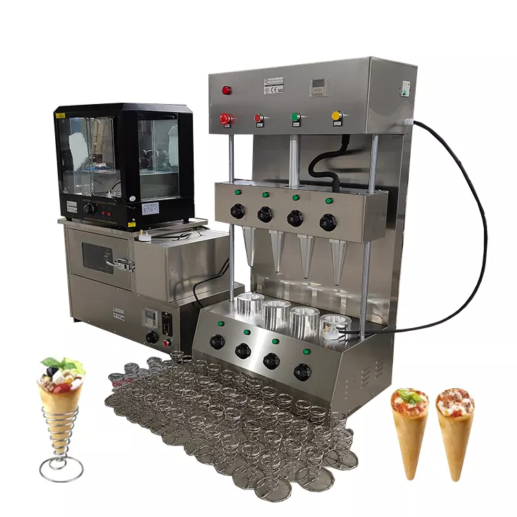 The Pizza Cone Molding Machine is designed for creating innovative pizza cones, offering a unique twist on traditional pizza for cafes, restaurants, and food businesses.
