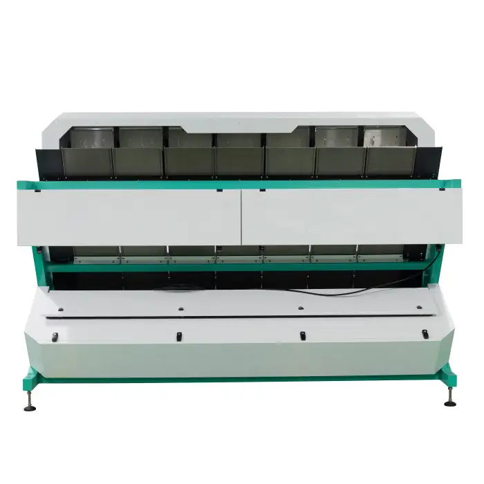 The sorting machine uses CCD cameras and LED lamps for enhanced sorting capabilities.