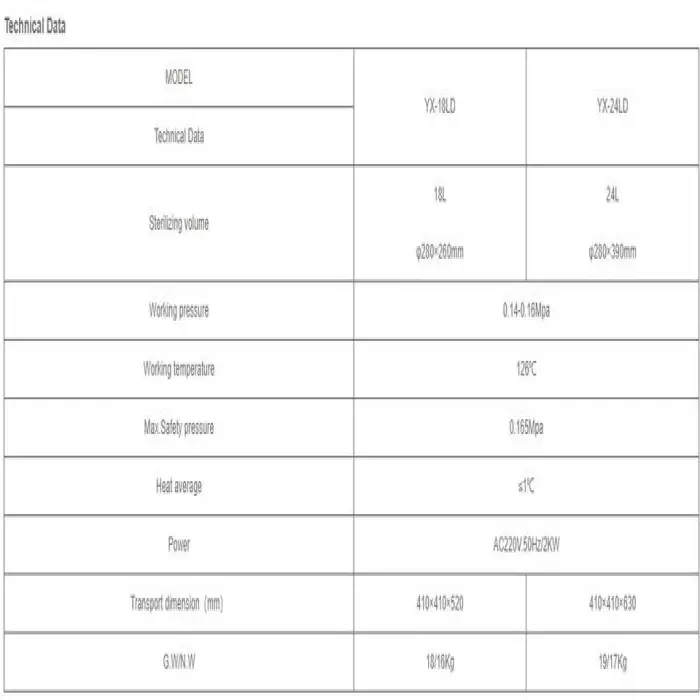 The sterilization machine is available in two sizes: 18 liters and 24 liters.