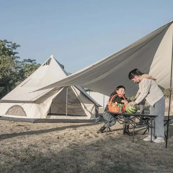 The spacious design of the tent can comfortably accommodate a small family or group of friends, typically fitting 4-6 people.