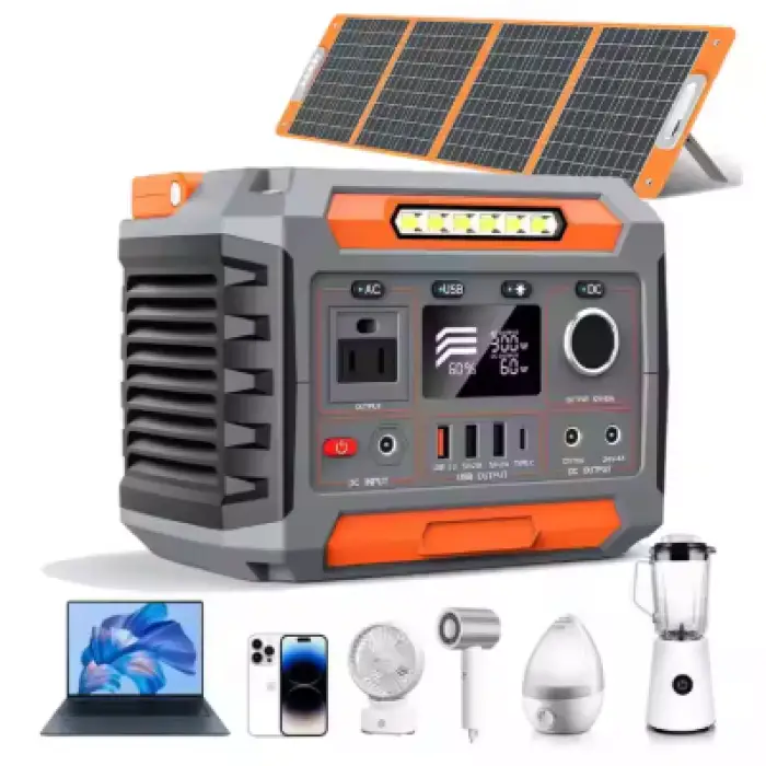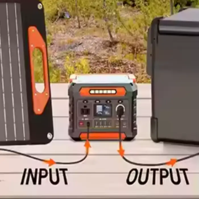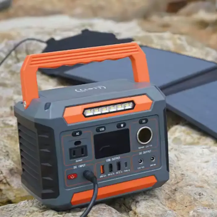 The Portable Power Station is available in a vibrant orange and black color scheme.