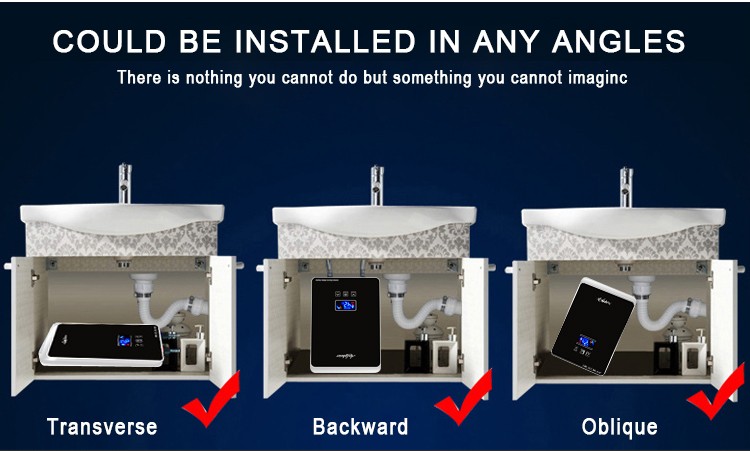 Yes — the compact, wall-mounted design is suitable for flexible installation angles and tight spaces. Always follow the installation instructions in the manual and local plumbing/electrical codes.