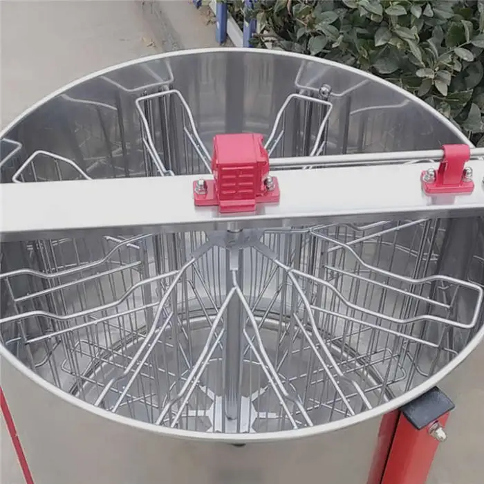 The extractor is designed to hold up to 6 frames, making it suitable for small to medium beekeeping operations.
