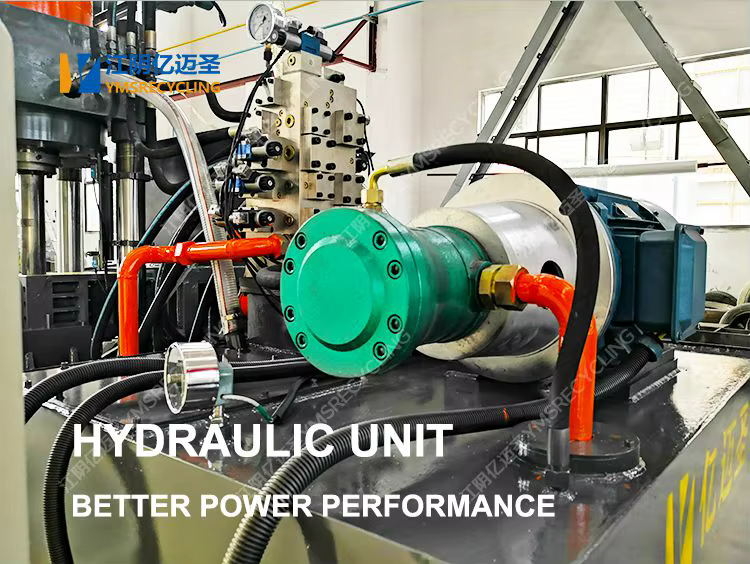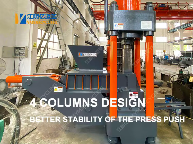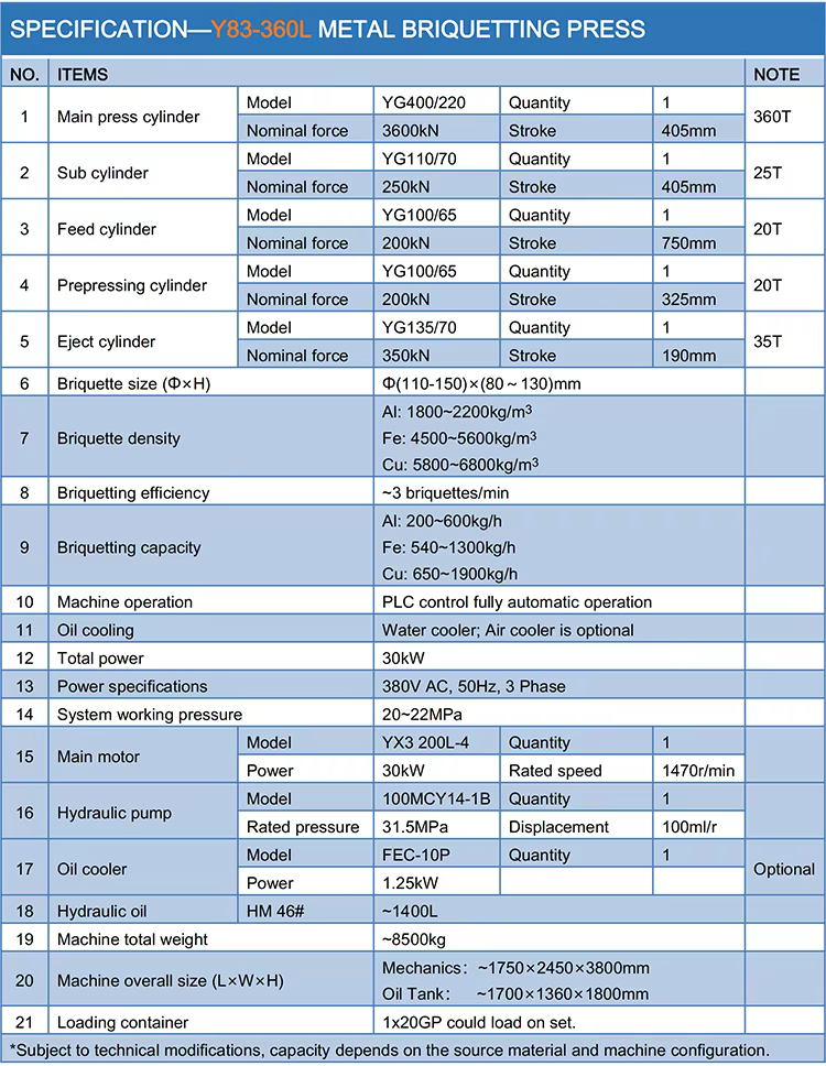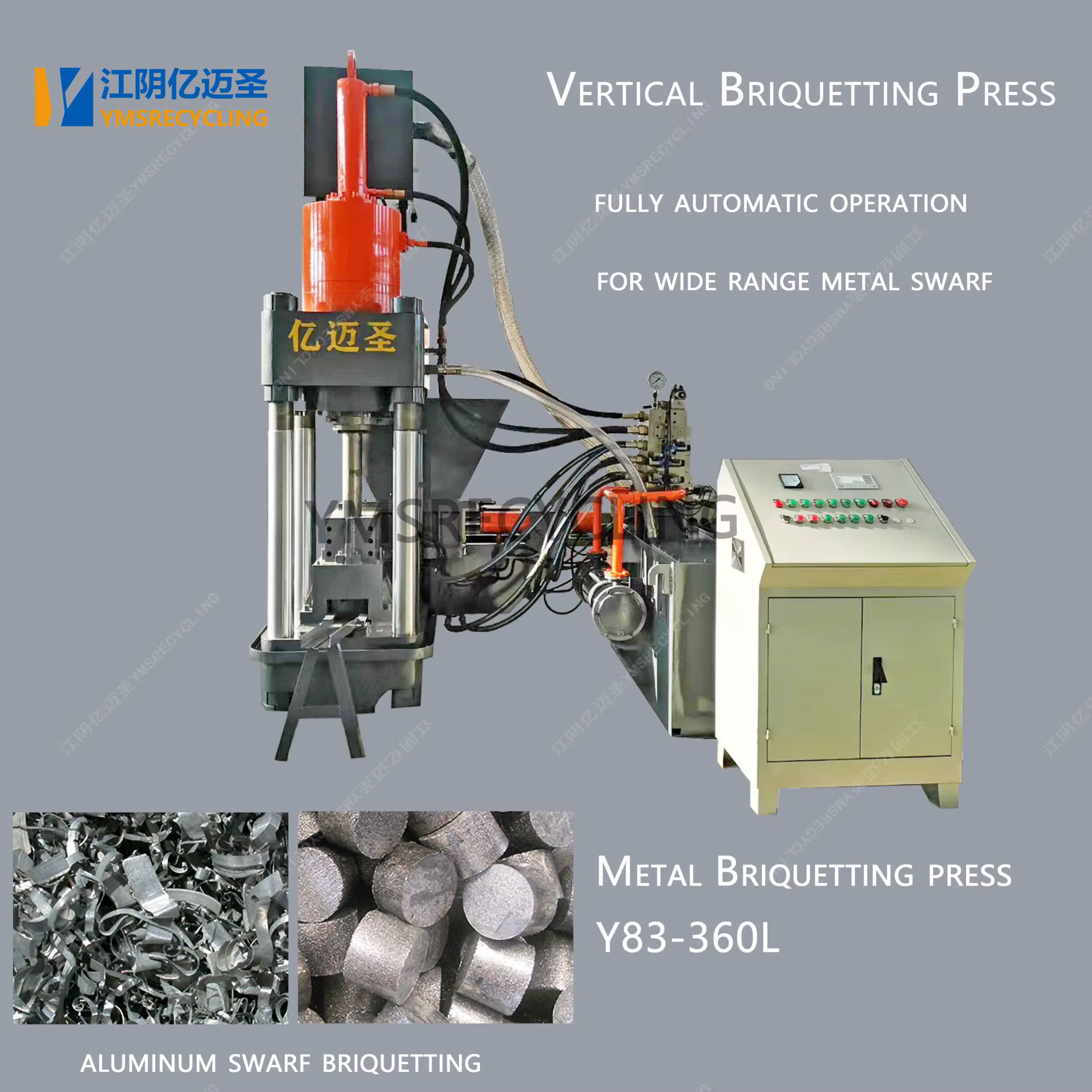 The machine can exert a maximum force of 360 tons, making it highly effective for compacting metal chips.