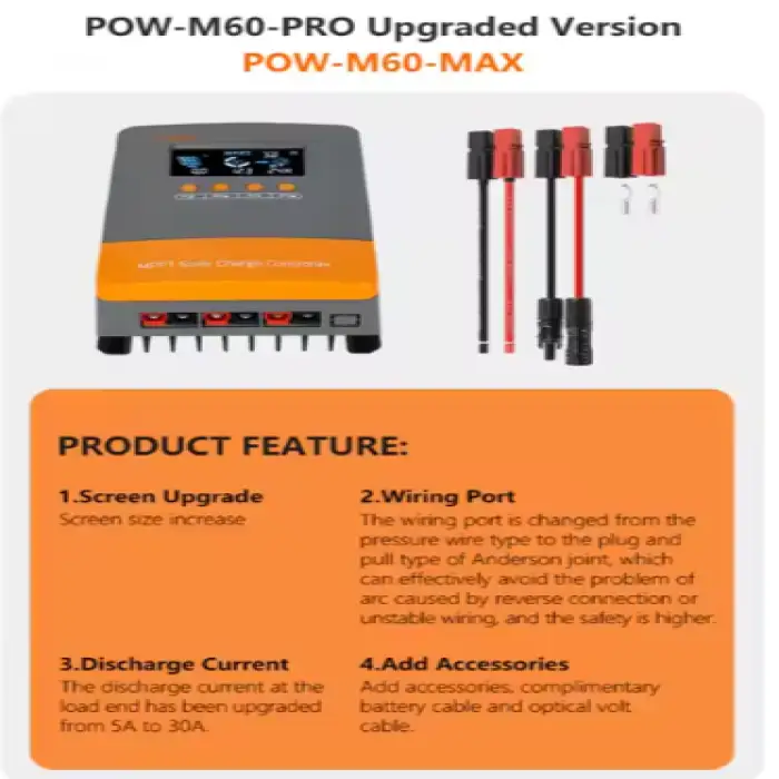 The PowMr solar charge controller is available in configurations of 30A, 40A, 50A, and 60A.