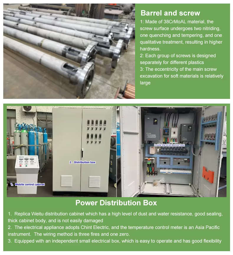 The robust single screw design enables effective processing of various plastic materials, enhancing the machine's efficiency.