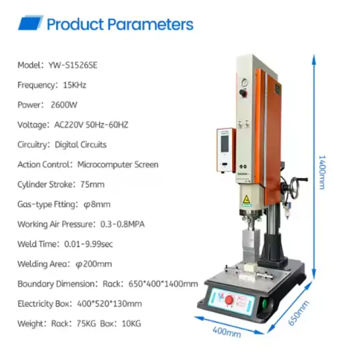 The machine offers frequency options of 15kHz, 20kHz, and even customized frequencies including 35kHz and 40kHz.