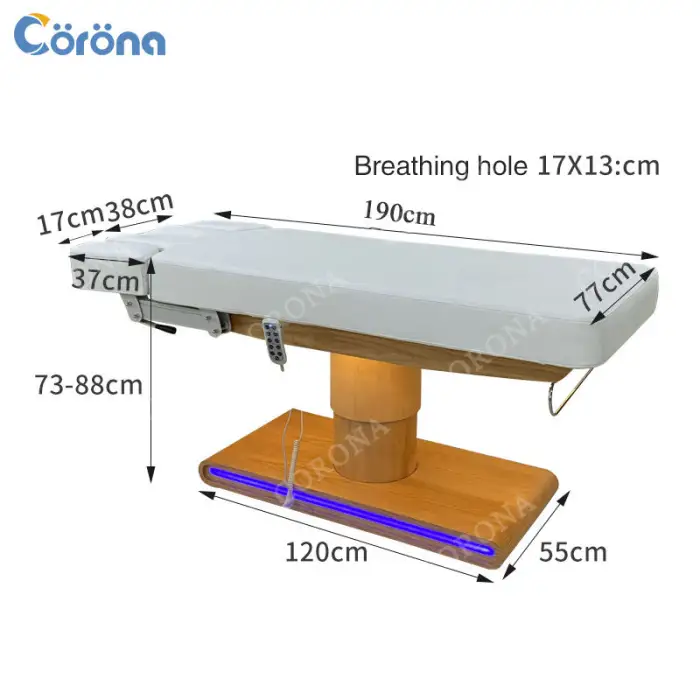 The electric beauty bed is made from high-quality synthetic leather, which ensures durability and comfort for clients during treatments.