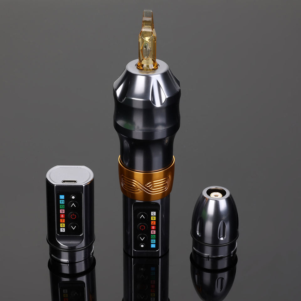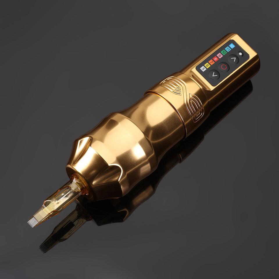 The Professional Tattoo Gun 1800mAh Gold EXO Wireless Battery Tattoo Pen is a top-quality tattoo machine designed for artists who value precision and convenience. With a powerful battery and a lightweight design, this pen is perfect for creating stunning tattoos. It's easy to use and offers great performance for both beginners and professionals.