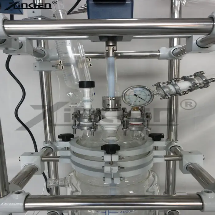 The reactor is constructed from high borosilicate glass 3.3, which provides excellent durability and resistance to thermal shock.