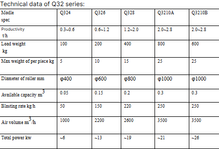The Q3210 Q326 Q324 Shot Blasting Machine is designed for cleaning and finishing metal parts. It effectively removes unwanted materials from castings through deflashing, degreasing, descaling, and other cleaning processes.