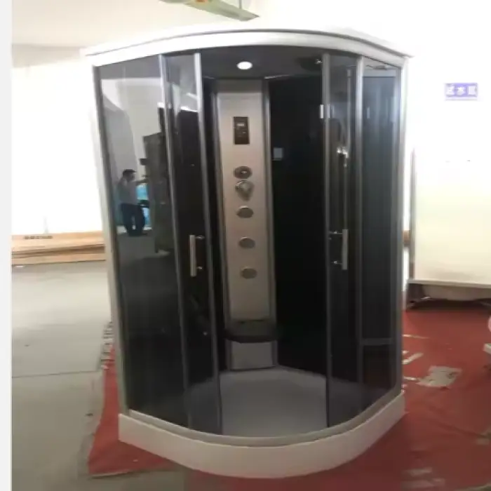 Yes, the shower cabin features 5mm tempered grey glass for added safety and durability.