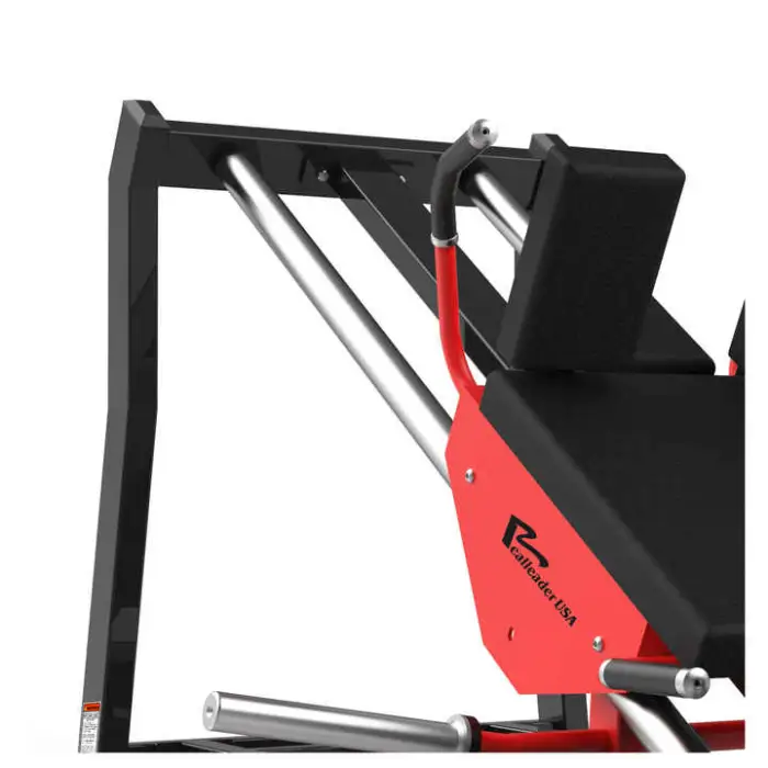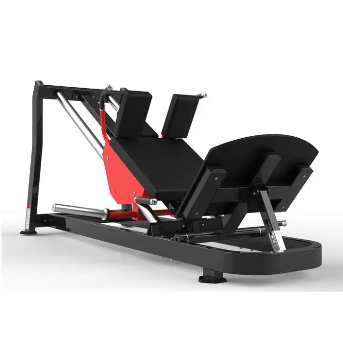 The Hack Squat Machine is constructed from high-quality steel for durability and stability.