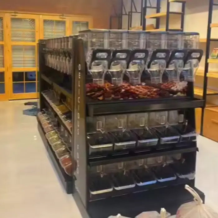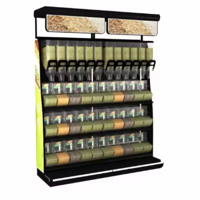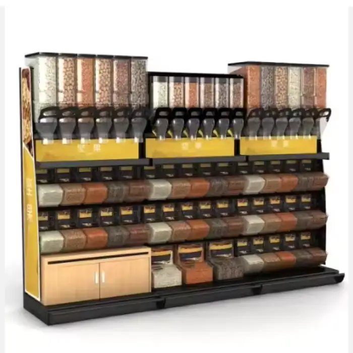 This display shelf is ideal for supermarkets, candy stores, zero waste shops, retail spaces, and trade shows.