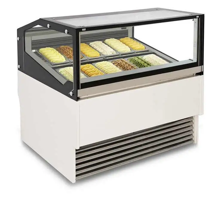 This single-temperature display cabinet is set to operate between -16°C and -18°C, ideal for preserving gelato and ice cream texture.