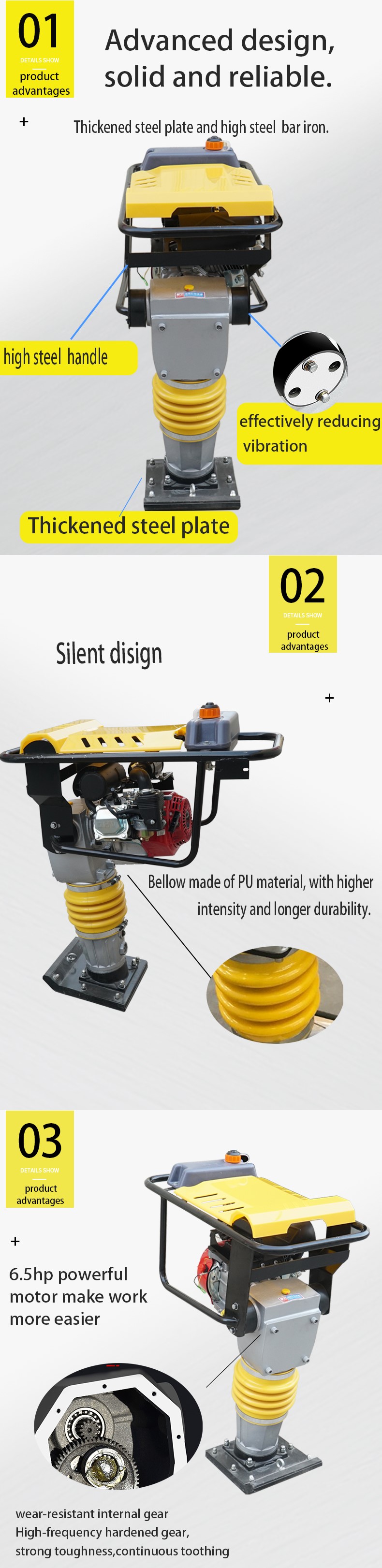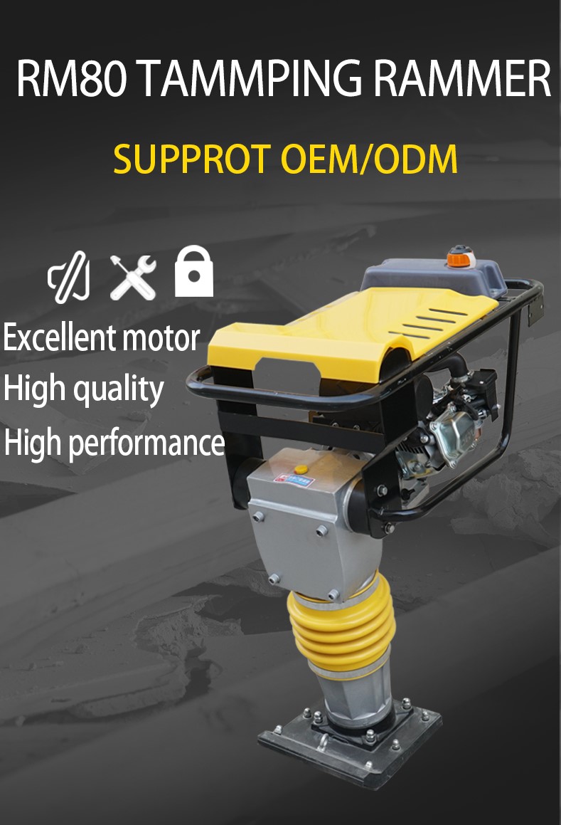 The RM80 Soil Tamping Rammer Compactor is designed for compacting soil, gravel, and asphalt in various construction projects, ensuring a stable and solid foundation.