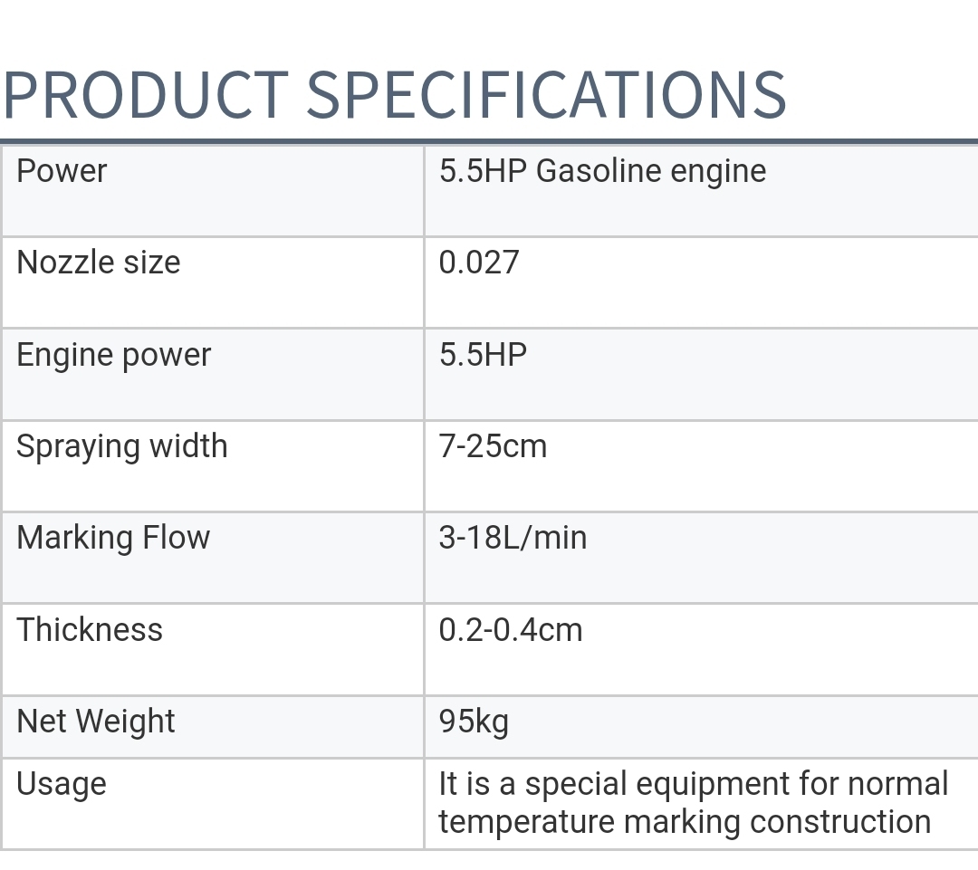 You can use ordinary airless spraying paint suitable for line marking, but it is recommended to check compatibility with the machine's specifications.