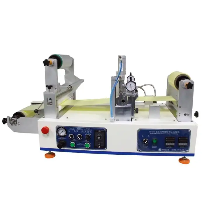The machine can create various adhesive samples for testing and development, including adhesive tapes and coatings.