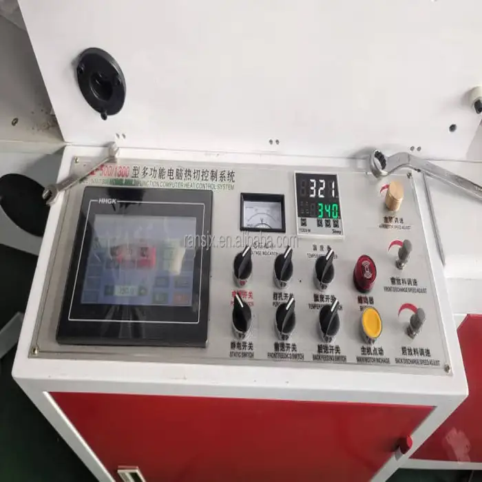The machine is equipped with a photocell color tracking system for accurate cutting.