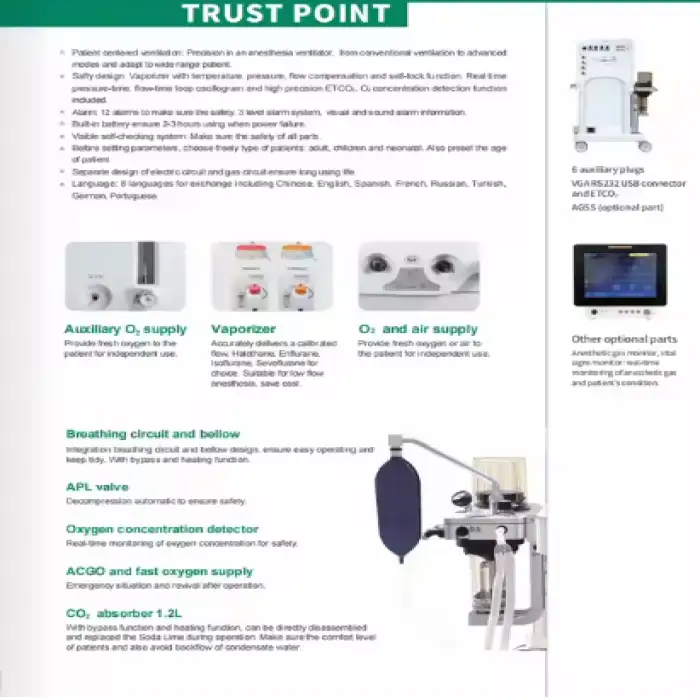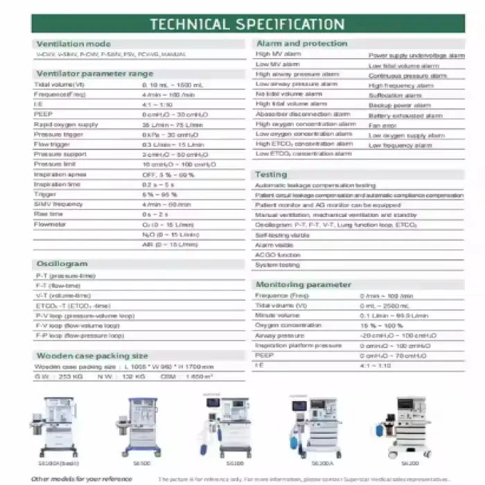 The S6600 Electric Anaesthesia Machine is designed for surgical operations, providing safe anaesthesia for patients during surgeries.