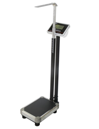 The Scale with Height Measurement MSLMH03 SLD measures body weight, height, and BMI.