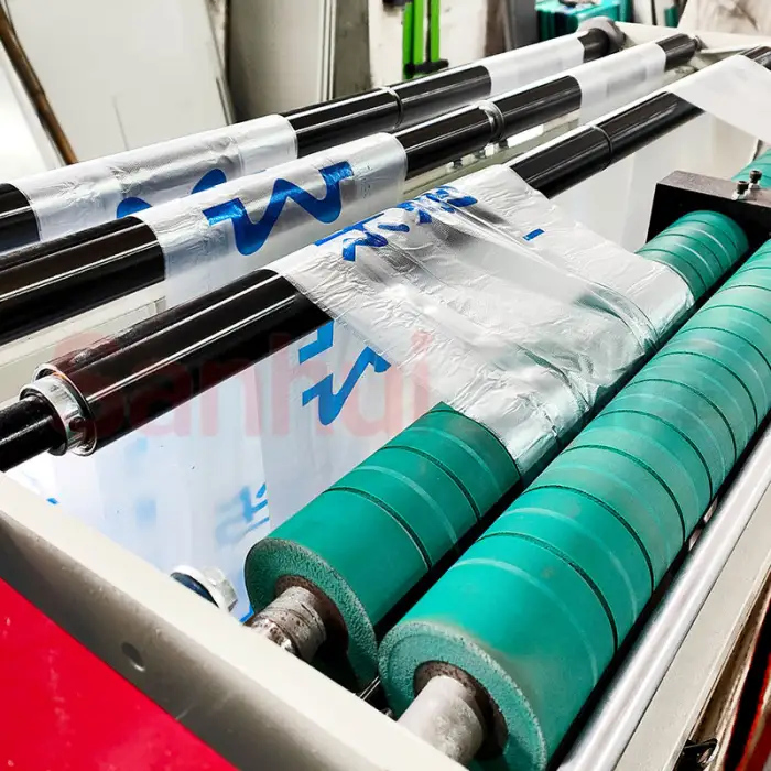 The machine uses heat to melt the edges of the plastic bags together, forming a secure seal.